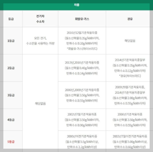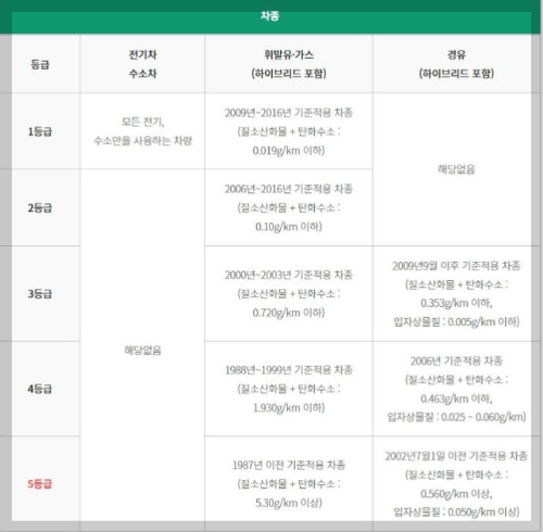 - 배출가스 등급제 홈페이지내에서 조회를 하였을 시 4등급 또는 5등급으로 나온 차량