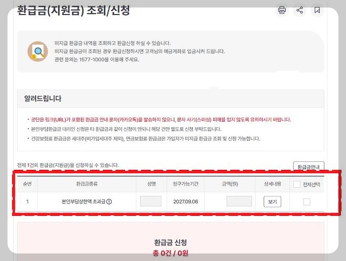 3️⃣ 환급금 조회 결과 확인: