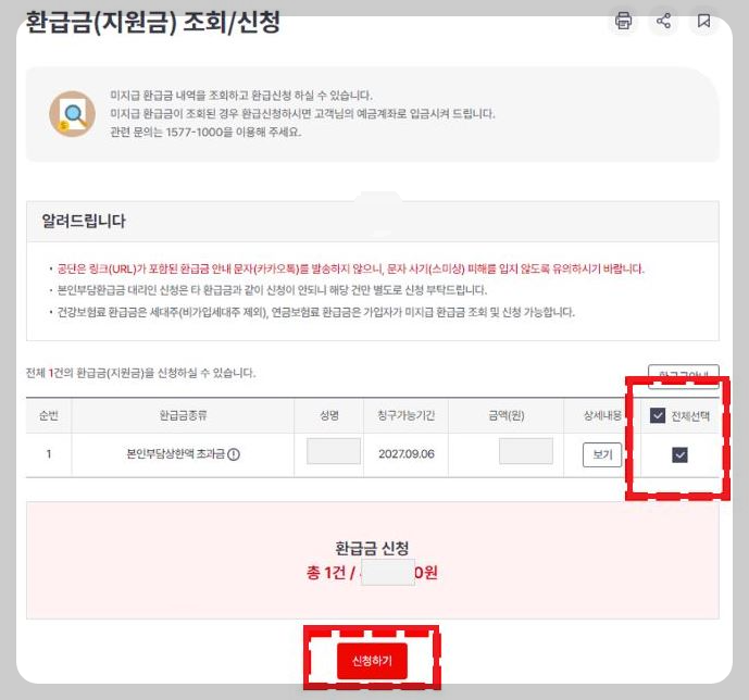 의료비 환급금 조회 (본인부담금 환급금 조회)