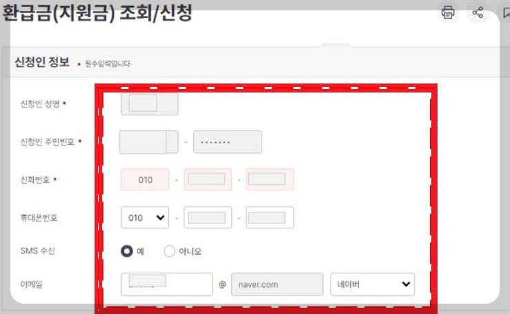 로그인을 하시면 아래의 이미지처럼 조회를 하실 수 있습니다. 여기서 본인의 환급신청할 금액이 조회가 된다면 바로 신청을 하시면 됩니다.